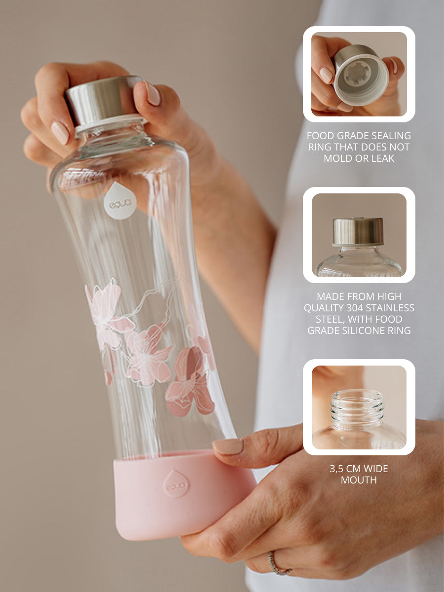 Einzelpreis proPflege deine Trinkgewohnheiten und reduziere deinen Plastikmüll mit der Magnolia Glasflasche. Ein praktisches Design, das leicht in der Hand liegt, und ein frischer Look, der dir hilft, dein Wohlbefinden zu verbessern.