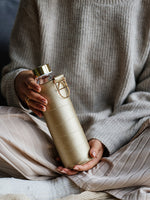 Unit price perA premium glass bottle designed for sustainable, stylish hydration. Finished with a golden cap and paired with a golden faux leather sleeve for extra protection.