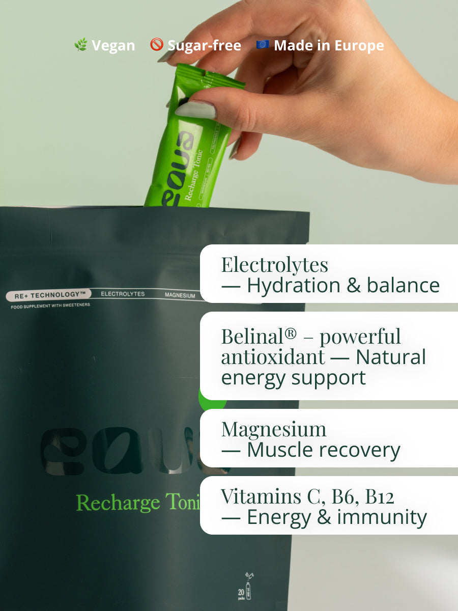 Pocítiš hlbšiu a dlhšie trvajúcu hydratáciu, keď Recharge Tonic doplní kľúčové elektrolyty ako horčík, draslík a sodík, vďaka čomu telo rýchlejšie vstrebá vodu a zostane v rovnováhe počas celého dňa.