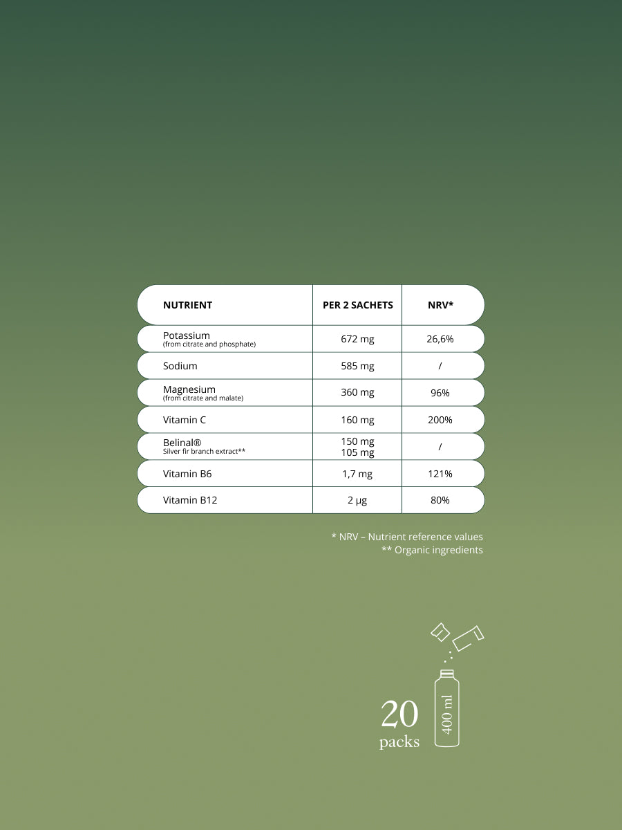 Dopĺňa minerály, ktoré tvoje telo potrebuje na stabilnú, prirodzenú energiu — bez kofeínu, bez cukru.
